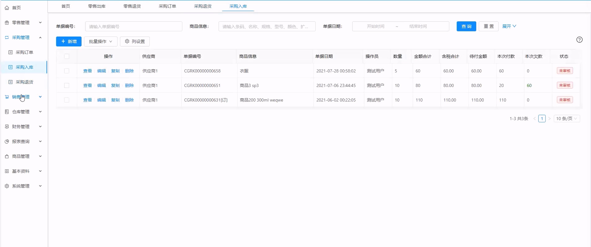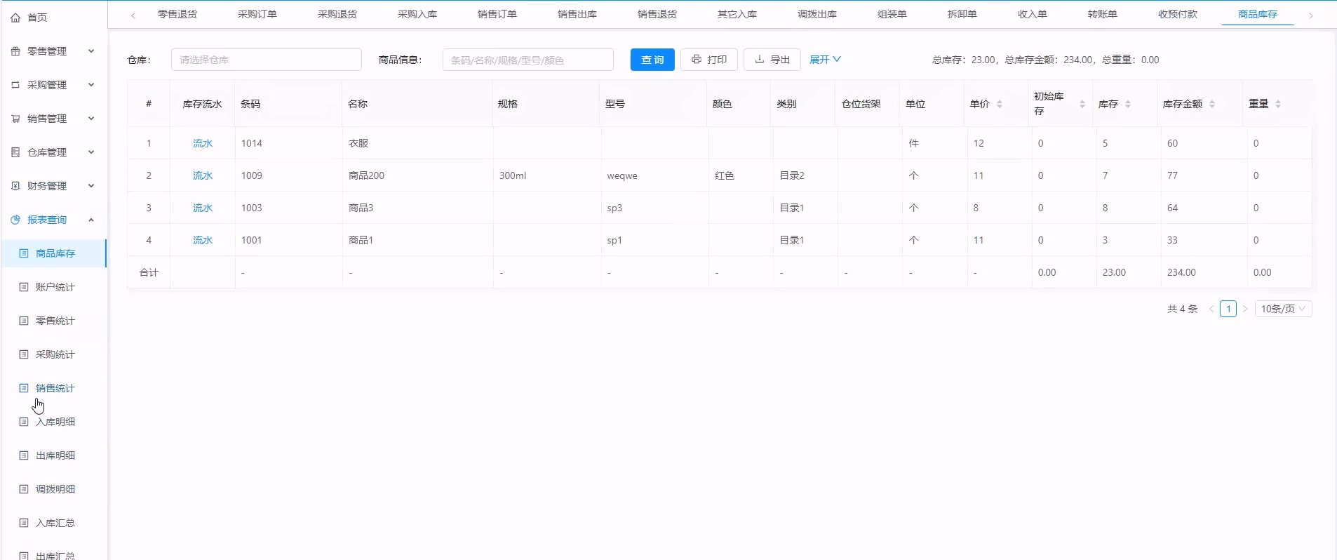 基于SpringBoot框架。主要模块有零售管理、采购管理、销售管理、仓库管理、财务管理、报表查询、系统管理等。支持预付款、收入支出、仓库调拨、组装拆卸、订单等特色功能。拥有库存状况、出入库统计等报表。
